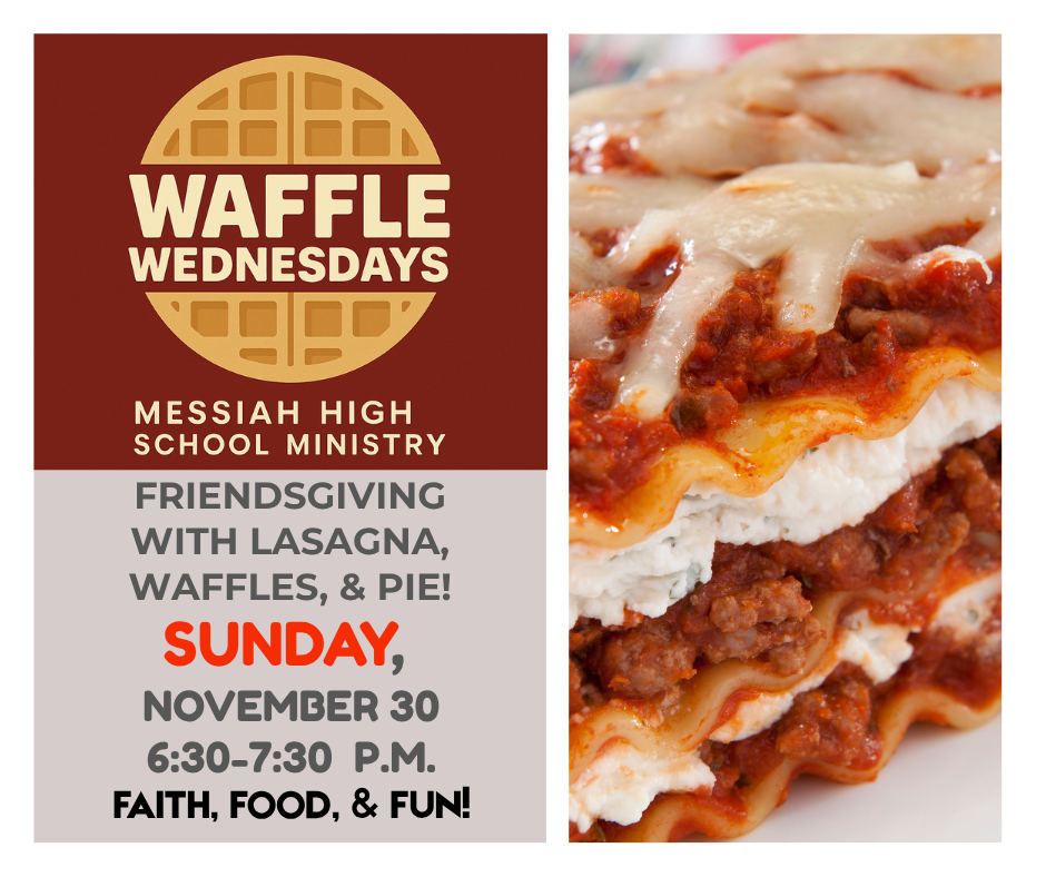 Messiah has launched a new program for High School Youth. We call it Waffle Wednesdays as there will be waffles with toppings, sausage, and bacon along with an activity and faith discussion.