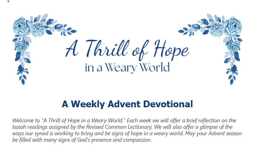 A Thrill of Hope in a Weary World is a weekly Advent devotional sent out by the South Central Synod of Wisconsin.