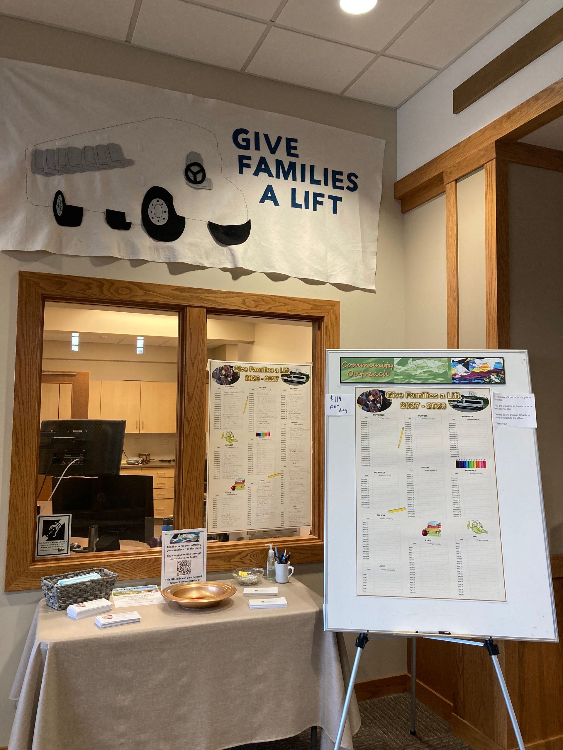 Thank you to those who signed up for our campaign! Standing at the easel where you signed up, look up and you will see that we have added some pieces to the bus (we thought this had a more iconic look than the actual van that Kennedy is purchasing.) If you have not yet signed up and want to, please add your name or contact Elizabeth volunteer@messiahchurch.com or 608-235-6910.
