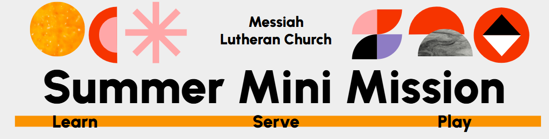 We are excited to invite our littlest learners to join us for a summer learning opportunity here at Messiah. Our summer "Mini" Mission is an opportunity for our children to serve others in our community. Children will learn about the importance of serving and the different ways we can serve through stories, discussion, and hands-on experiences. We will work with the YOW group to complete service projects that will help others in our community and we will spend some time playing and eating together.